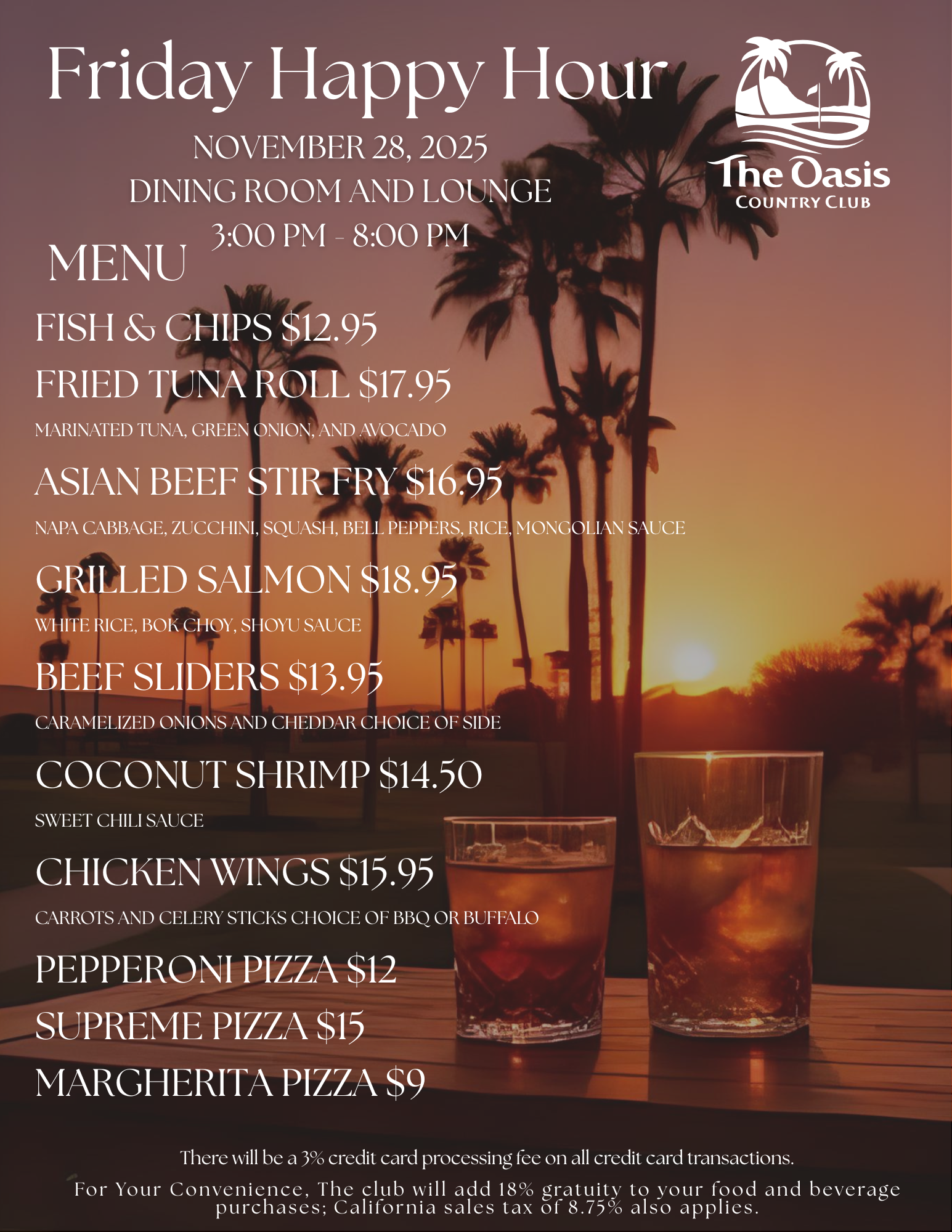 Friday Happy Hour 3:00 p.m. - 8:00 p.m. Happy Hour Menu